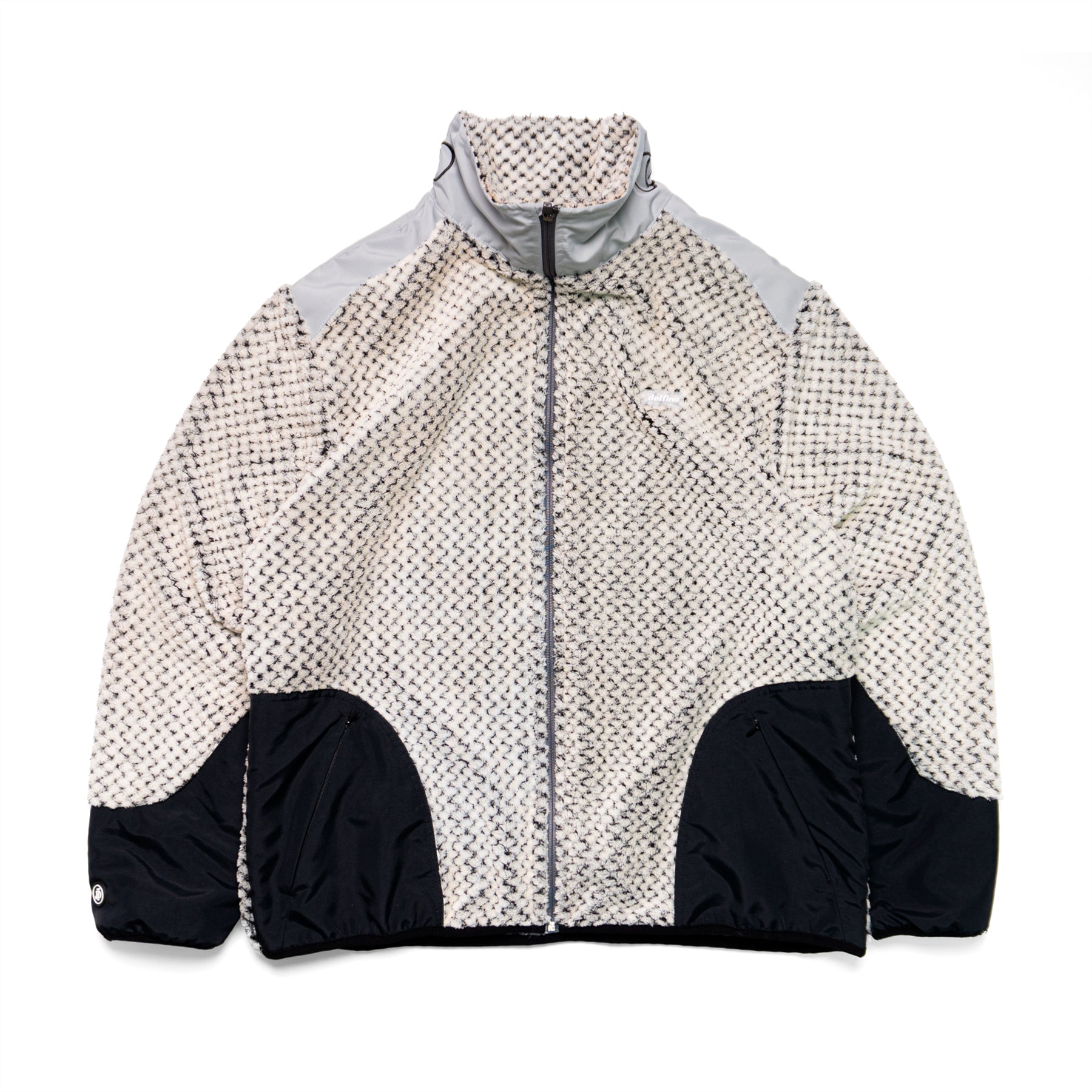 Chamarra afelpada con cortes en mangas y hombros. Impresión de serigrafía en cuello. Corte regular. Hecho en México.